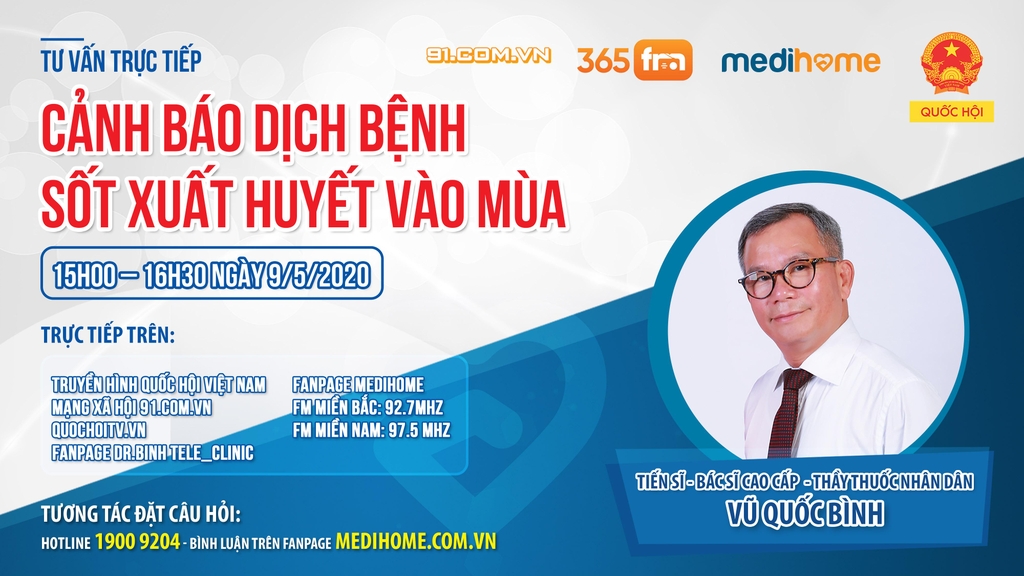Để cập nhật và trang bị những kiến thức cơ bản trong phòng ngừa và điều trị sốt xuất huyết, mời quý vị đón xem chương trình Tư vấn sức khỏe trực tiếp BỆNH SỐT XUẤT HUYẾT VÀ CÁCH PHÒNG TRÁNH ĐIỀU TRỊ được tư vấn bởi Tiến sĩ – Bác sĩ cao cấp – Thầy thuốc nhân dân Vũ Quốc Bình hiện đang là giám đốc TRUNG TÂM NGHIÊN CỨU PHÁT TRIỂN CÔNG NGHỆ Y TẾ TỪ XA VIỆT NAM (Vietnam Telehealth Resource center – VTRC)